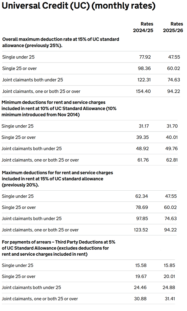 If you rely on Universal Credit and have existing deductions, you don’t need to take any action—the changes will automatically take effect in April 2025.