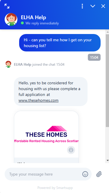You don't have to have a My Home account, or even one of our tenants to use the the feature. If you have a question about our services, need help registering or filling out forms, or just want to leave feedback about our website, someone will be available to chat with you.